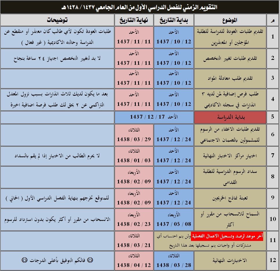 O Xrhsths احمد الشعيبي Sto Twitter التقويم الزمني للفصل الدراسي الاول من العام الجامعي 1437 1438 هـhttps T Co Psjrypbb3n