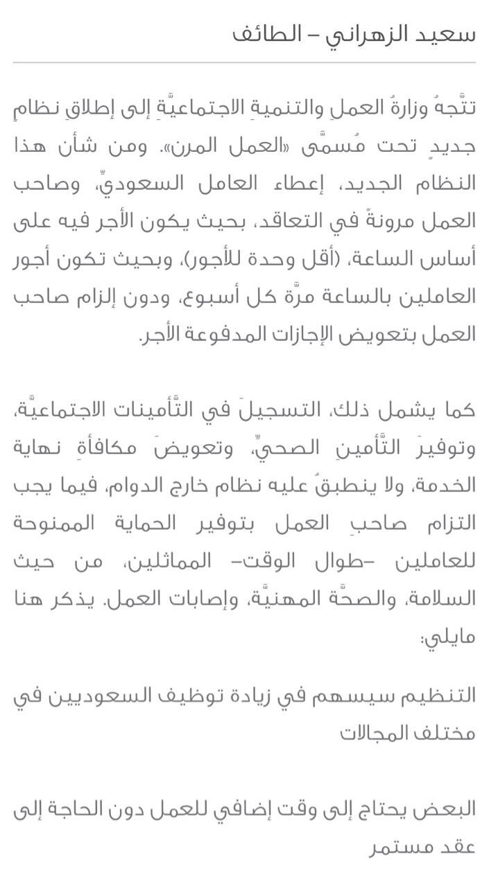 وهذا يوضح الحد الأدنى للأجور من خلال التنسيق بين المؤسسة العامة للتأمينات الاجتماعية ووزارة العمل لوضع حد أدنى لأجور السعوديين بما لا يقل عن 6000 ريال شهريا أو 35 ريالا للساعة وينمو سنويا بنسبة التضخم من خلال برامج السعودة ونظام حماية الأجور مما سيزيد دخل العامل.