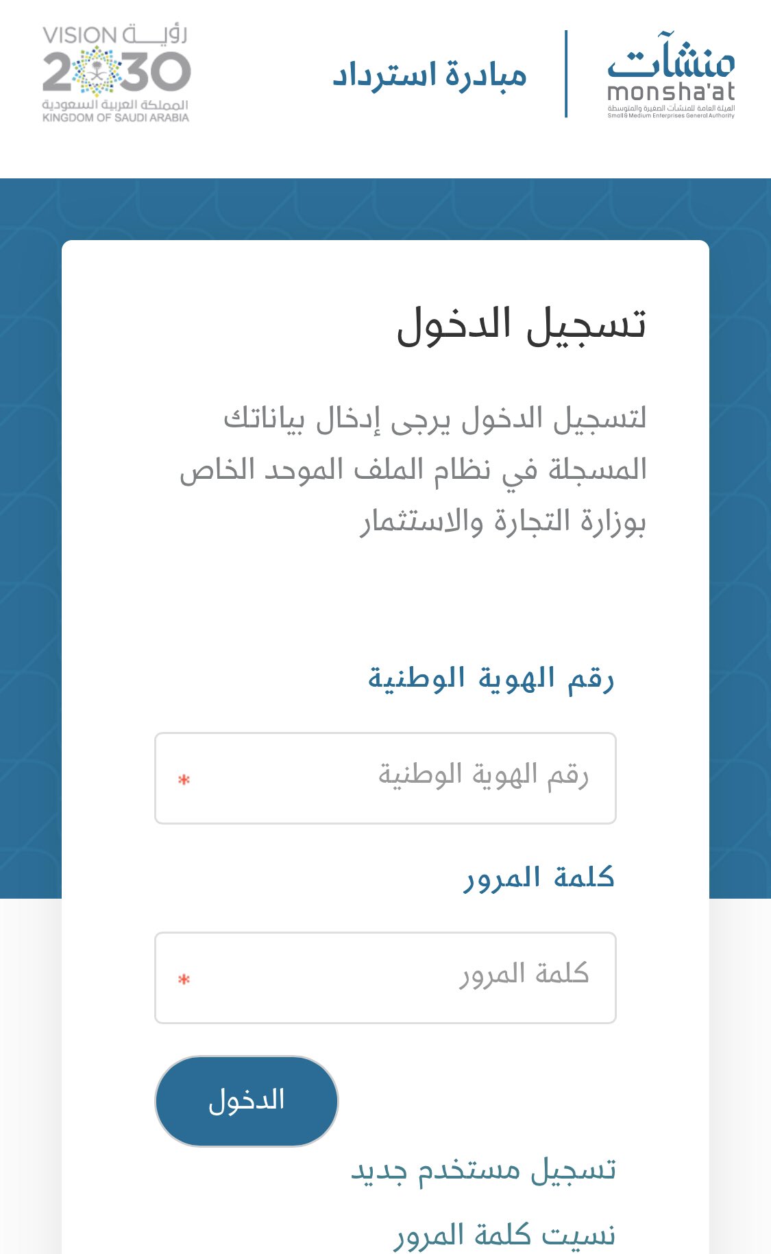 إتمام للخدمات على تويتر سؤال كيف أسجل منشأتي في مبادرة استرداد جواب ١ قم بالدخول لمبادرة استرداد باستخدام بيانات الدخول لـ وزارة التجارة على الرابط التالي Https T Co N7pjwxqxot ٢