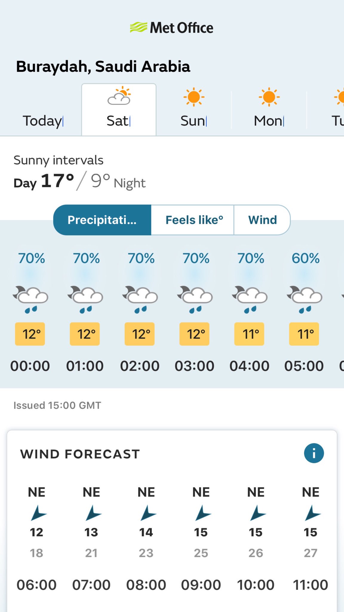 أ د عبدالله المسند على تويتر حالة الطقس المتوقعة في بريدة من منتصف الليل حتى الساعة 5 الفجر وتشمل احتمالية نزول المطر كل ساعة درجة الحرارة اتجاه وسرعة الرياح