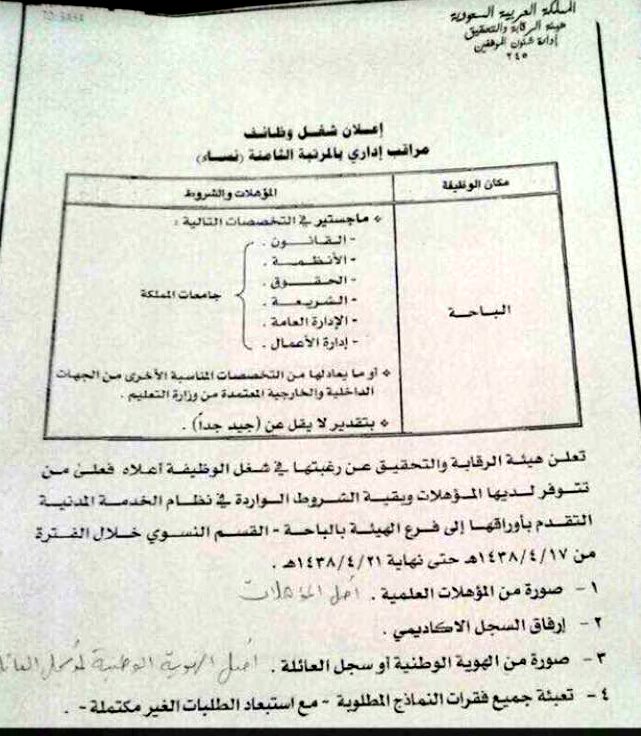 وافي عبد الله On Twitter وظائف نسائية على المرتبة الثامنة لحاملات الماجستير في 6 تخصصات بهيئة الرقابة والتحقيق فرع الباحة والتقديم ينتهي بعد 4 أيام Https T Co Tcfa6ip0tp