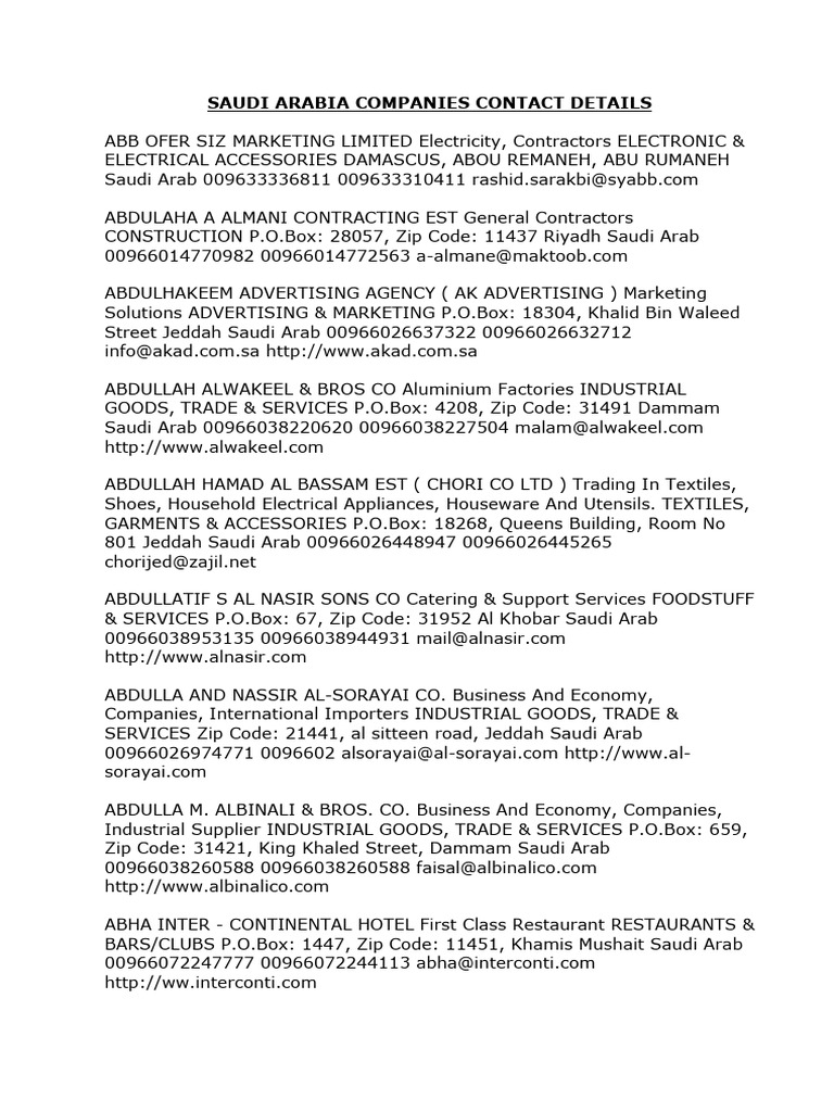 Saudi Arabia Companies Contact Details Riyadh Saudi Arabia