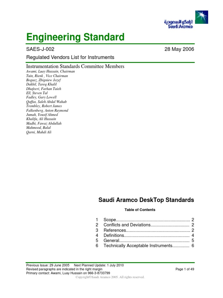Saudi Aramco Approved Vendors List Construction Contractor Shall Procure Materials Only From Kjo Saudi Aramco Approved Vendors Only Gi2 102 Gi 2 102 1 And Saudi Aramco